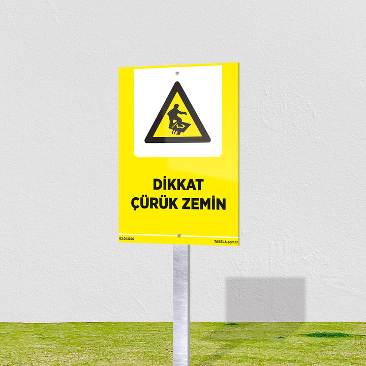 Dikkat Çürük Zemin Levhası, genellikle toprak bataklık olan bölgelere yapılan dolgu alanlarında çevreyi ve orada çalışanları bilgilendirmek amacıyla kullanılan levha çeşitidir.