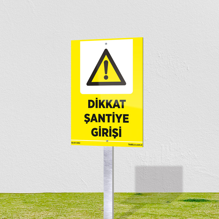 Dikkat Şantiye Girişi Levhası, çevredeki insanları ve sürücüleri herhangi oluşabilecek olumsuzlukları engellemek amacıyla kullanılan levha çeşitidir.